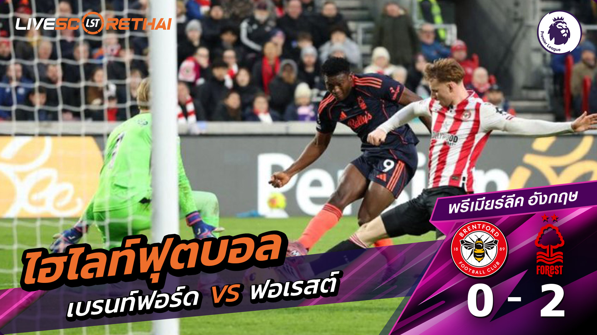 ดูฟรี ไฮไลท์ฟุตบอล พรีเมียร์ลีกอังกฤษ เบรนท์ฟอร์ด VS นอตทิงแฮมฟอเรสต์ ที่ www2.livescorethai.tv
