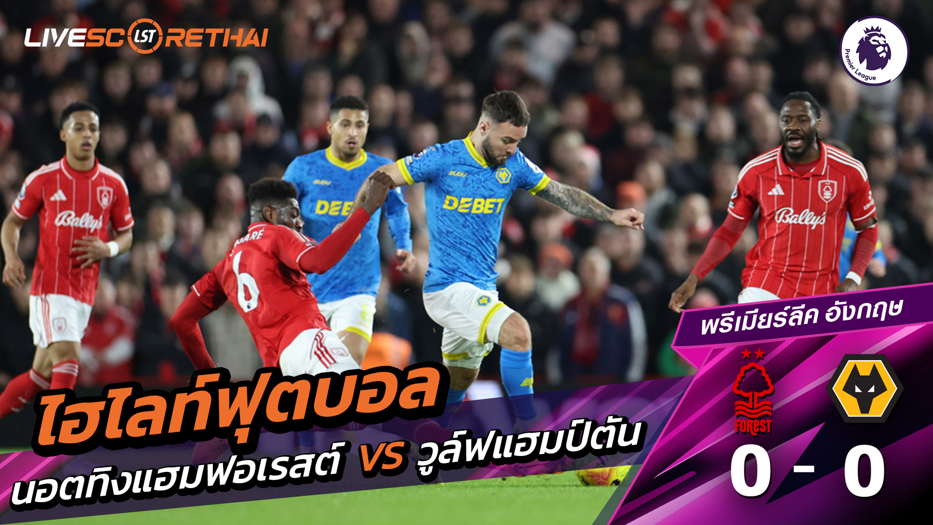 ดูฟรี ไฮไลท์ฟุตบอล พรีเมียร์ลีกอังกฤษ นอตทิงแฮมฟอเรสต์ VS วูล์ฟแฮมป์ตัน ที่ www2.livescorethai.tv