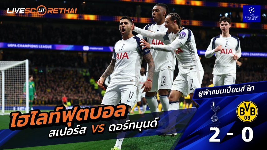 ดูฟรี ไฮไลท์ฟุตบอล ยูฟ่าแชมเปียนส์ลีก ท็อตแนม ฮ็อตสเปอร์ส VS ดอร์ทมุนด์ ที่ www2.livescorethai.tv